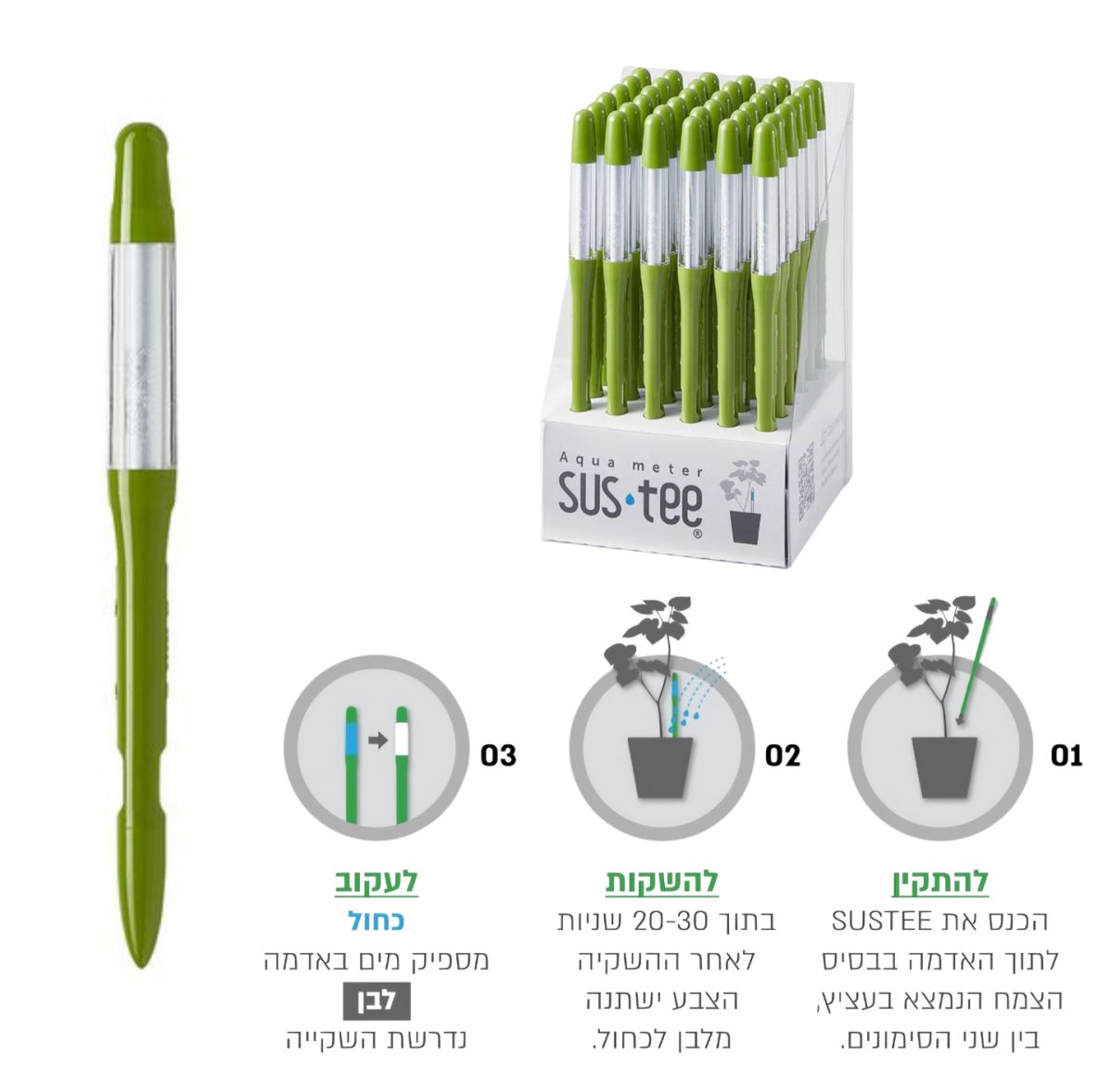 המכשיר מודד את רמת הלחות באדמה באמצעות ערך PF המתאים לכל סוגי הצמחים כולל סחלבים, סוקולנטיים וצמחי בית. SUSTEE פועל עם כל סוגי האדמה והצמחים.
