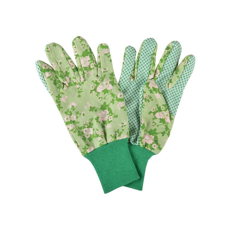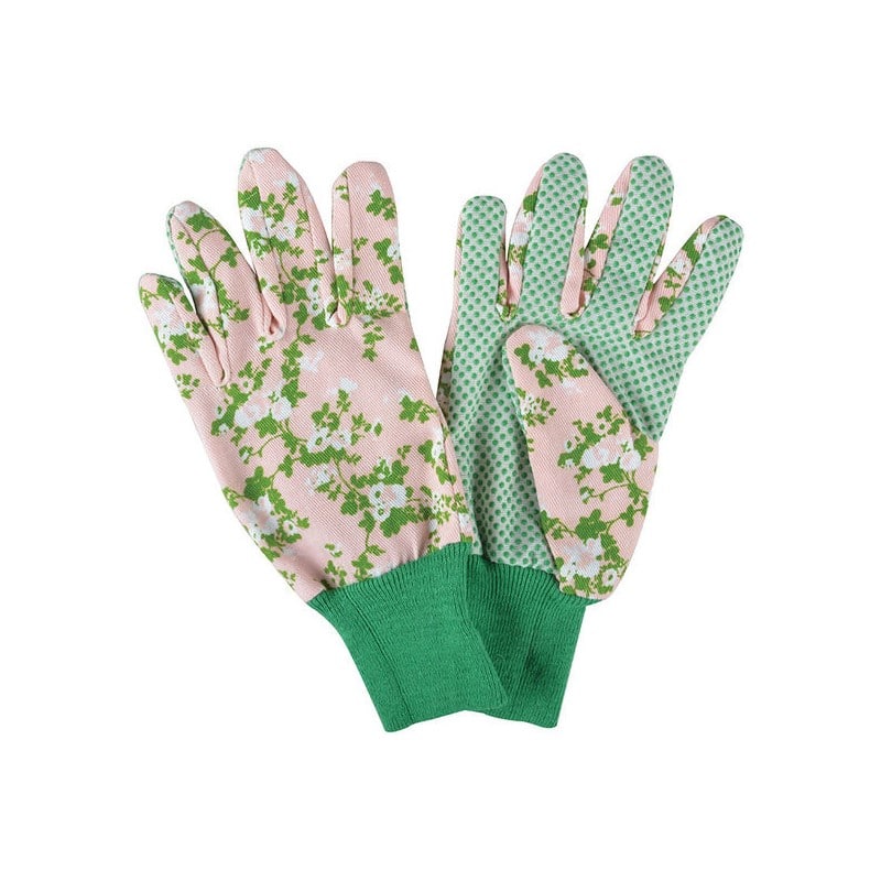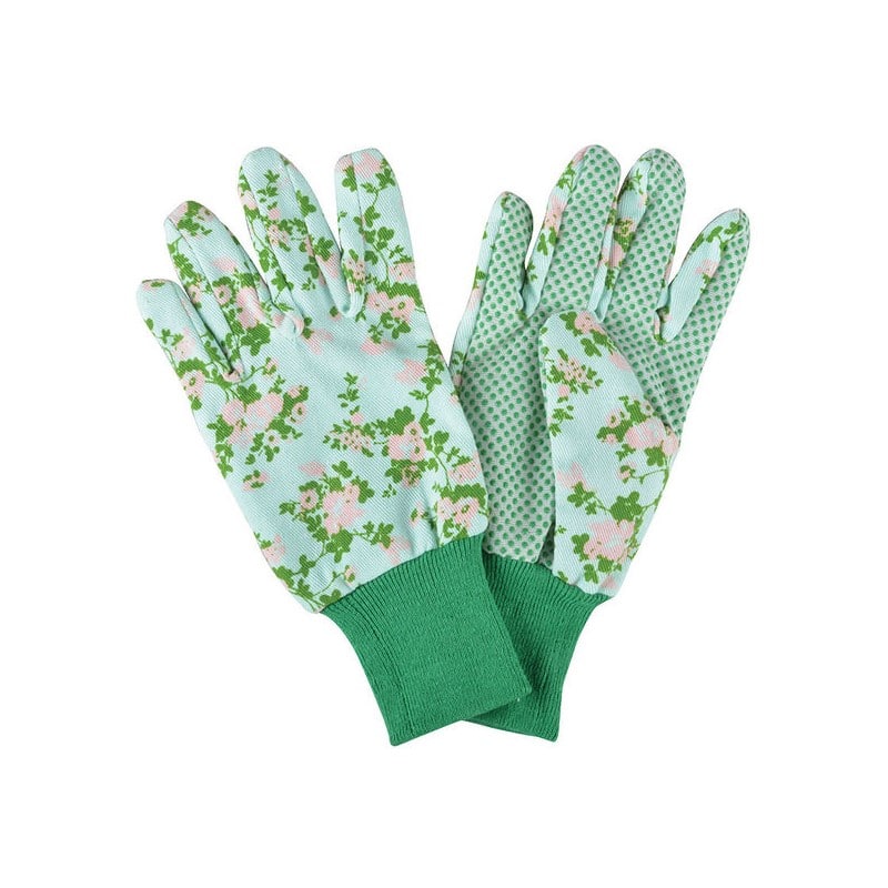 כפפות עבודה שמכניסות לאווירת טיפוח ושומרות על עור ידיים נקי ובריא. הכפפות מעוצבות ומעוטרת בפרחים.