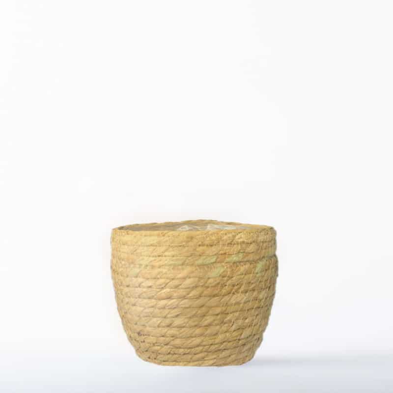 סל קש דקורטיבי בעבודת יד. הסל מגיע עם שקית פנימית אטומה למים כך שכל מה שנשאר זה להניח את הצמח עם עציץ המגדלים ישר בפנים. הסל מעוגל קלות ומכניס אווירה זורמת ונינוחה.